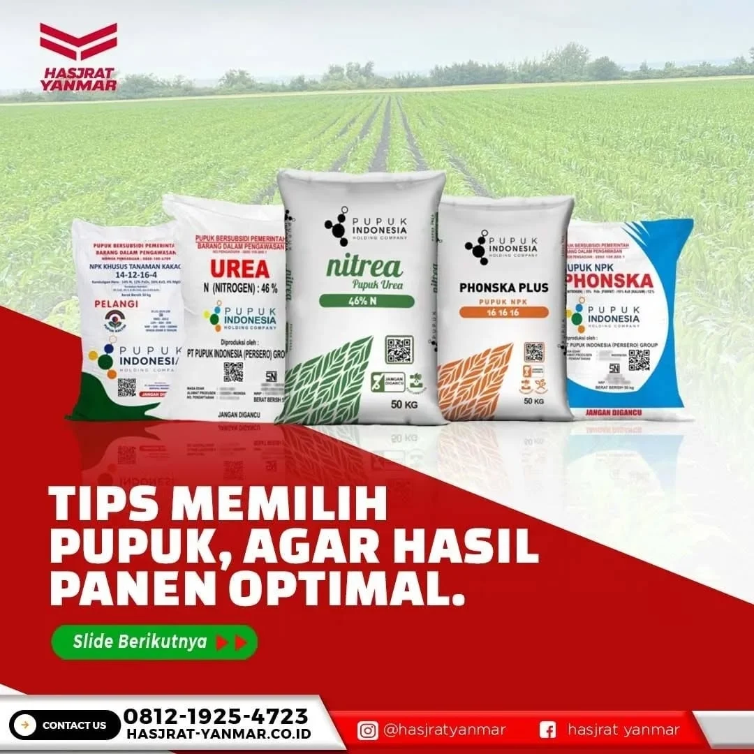 Pemilihan pupuk yang tepat merupakan kunci utama dalam meningkatkan hasil panen. Di bawah ini, Hasjrat Yanmar merangkum beberapa tips memilih pupuk agar tanaman tumbuh optimal dan hasil panen melimpah: